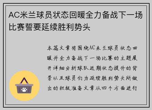 本篇文章将围绕AC米兰球员状态回暖并全力...