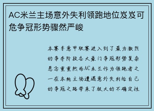 本赛季意甲联赛进入到了最为激烈的争夺阶段...