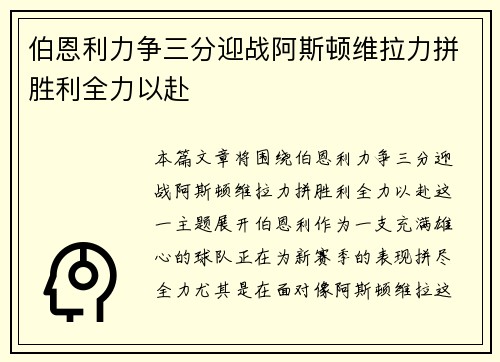 本篇文章将围绕“伯恩利力争三分迎战阿斯顿...